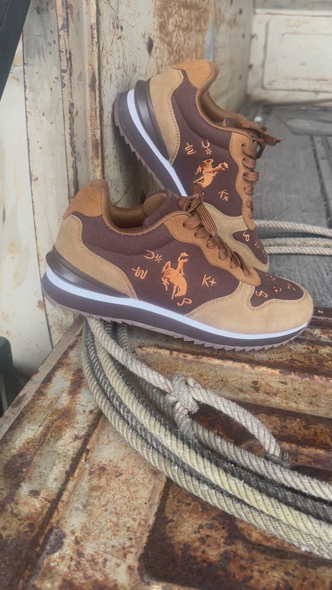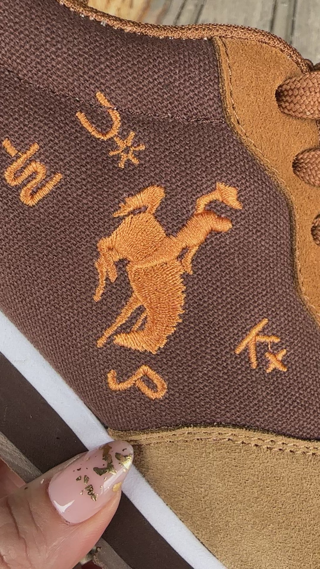 Meet the Brand It Bronc Sneakers — designed and developed exclusively by the founders of Heels N Spurs, made for the cowgirl who wants her everyday kicks to carry real Western soul. Built from a durable blend of canvas, suede, and detailed embroidery that gives them that unmistakable bronc-rider attitude. Every stitch, every symbol, and every curve was intentionally crafted to bring comfort, grit, and style together in one signature pair you won’t find anywhere else.