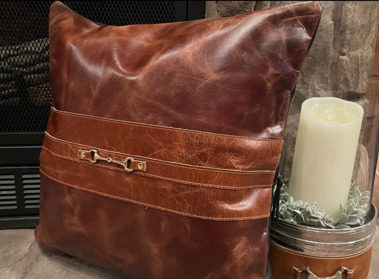 Snaffle Bit Leather Pillow