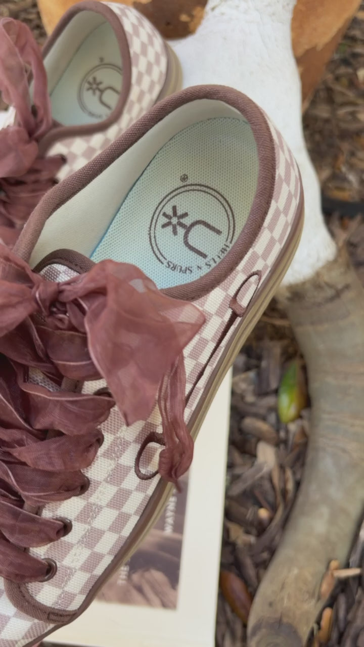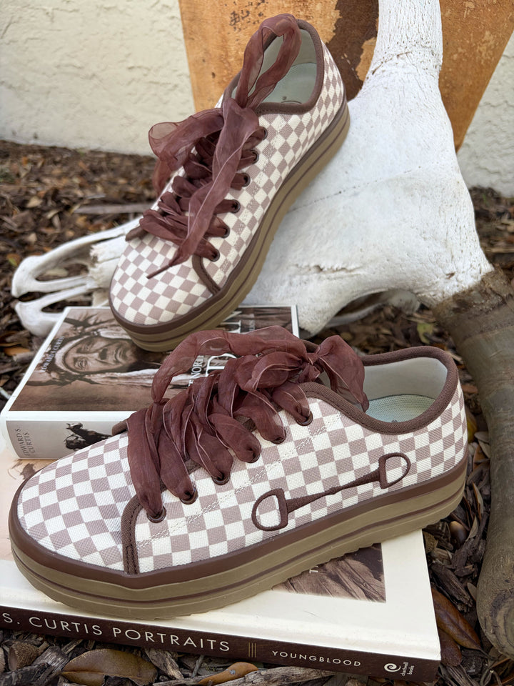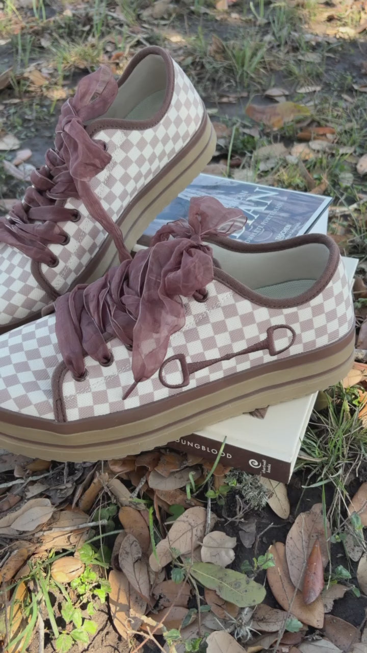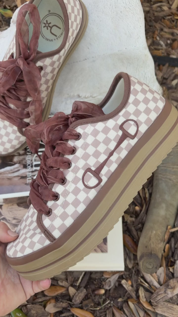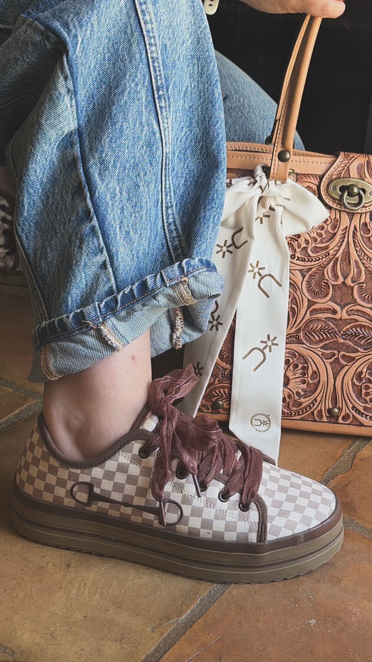 The Checker Bit Sneaker blends classic checkered style with a bold western horsebit detail for a look that’s equal parts trendy and cowgirl cool. Designed as a Heels N Spurs exclusive, this standout pair can’t be found anywhere else. From the soft ribbon-style laces to the elevated platform sole, every detail brings that effortless western flair your outfits have been waiting for.