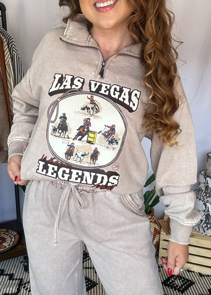 ✔️ Vintage “Las Vegas Legends” rodeo graphic on the quarter-zip pullover