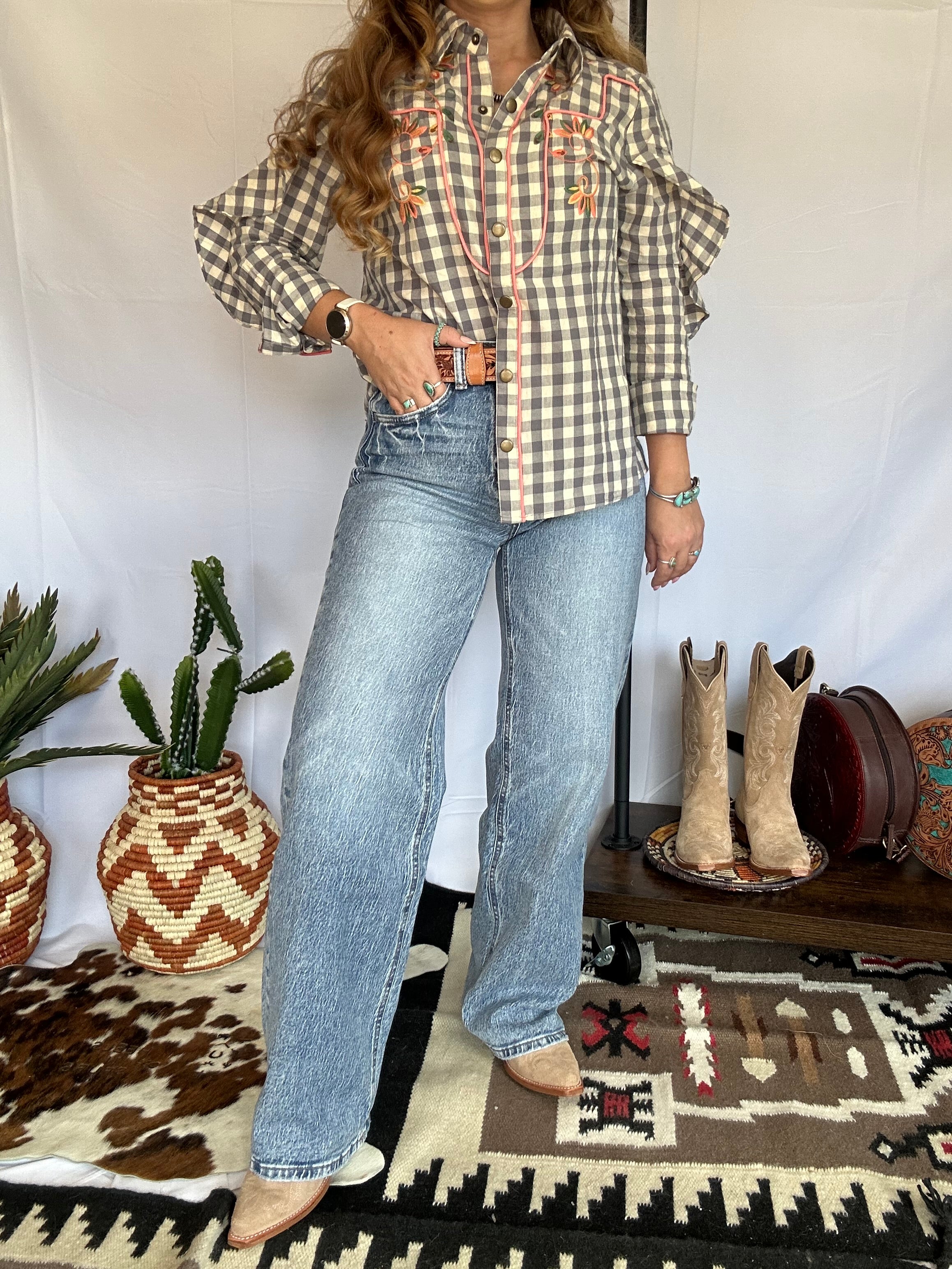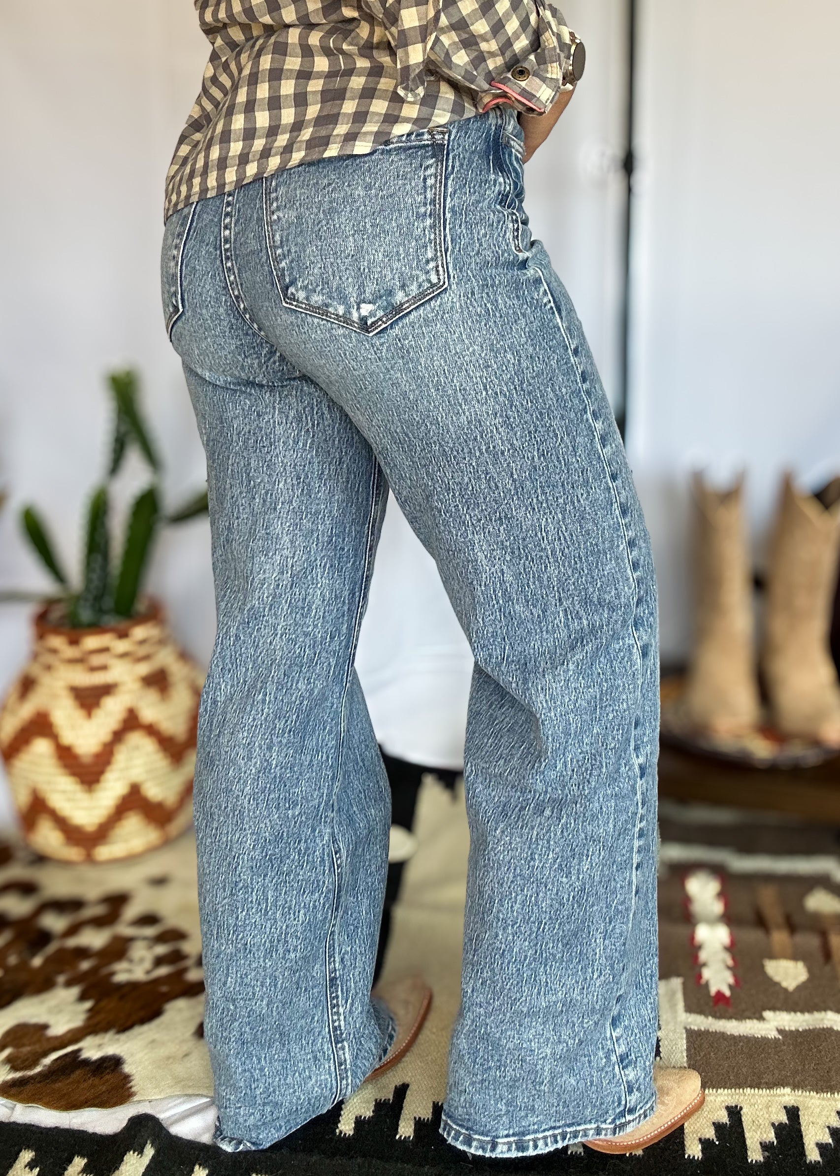 Step into your main character era with the Reba Wide-Leg Jeans—an ultra-flattering nod to the '90s with just the right touch of Western grit. These super high-rise beauties feature comfort stretch denim with a lightly distressed wash that gives off that lived-in look we love. Wide legs, a full-length fit, and that perfect broken-in fade? You’ll be reaching for these every day of the week.