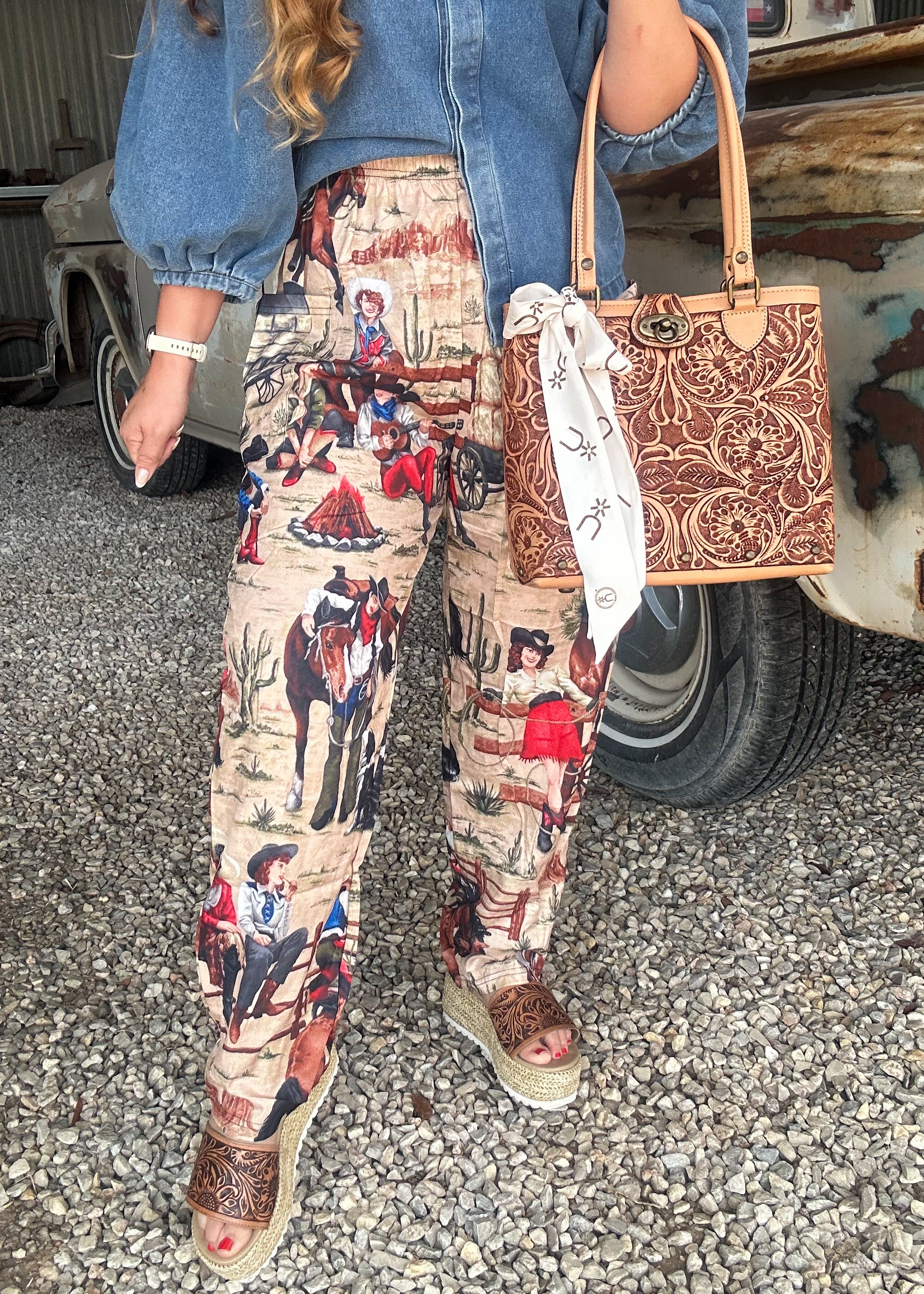 Saddle up, darlin’—these wide-leg beauties were made for the bold and free-spirited cowgirl. Whether you’re strollin’ through town or kickin’ back at the ranch, these pants bring Western charm and modern comfort together in one wild ride.
