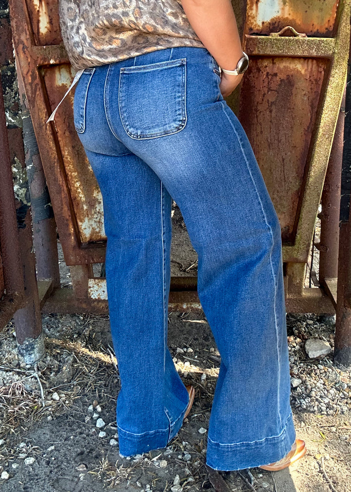 For the cowgirl who works hard and plays harder—meet the jeans built for both grit and style. The Rustler High Rise Wide Jeans bring that timeless Western edge with a clean wide-leg cut, flattering high rise, and rugged seam detail that nods to classic cowboy durability. Whether you’re saddle-bound or two-stepping, these jeans move with you every mile of the trail.