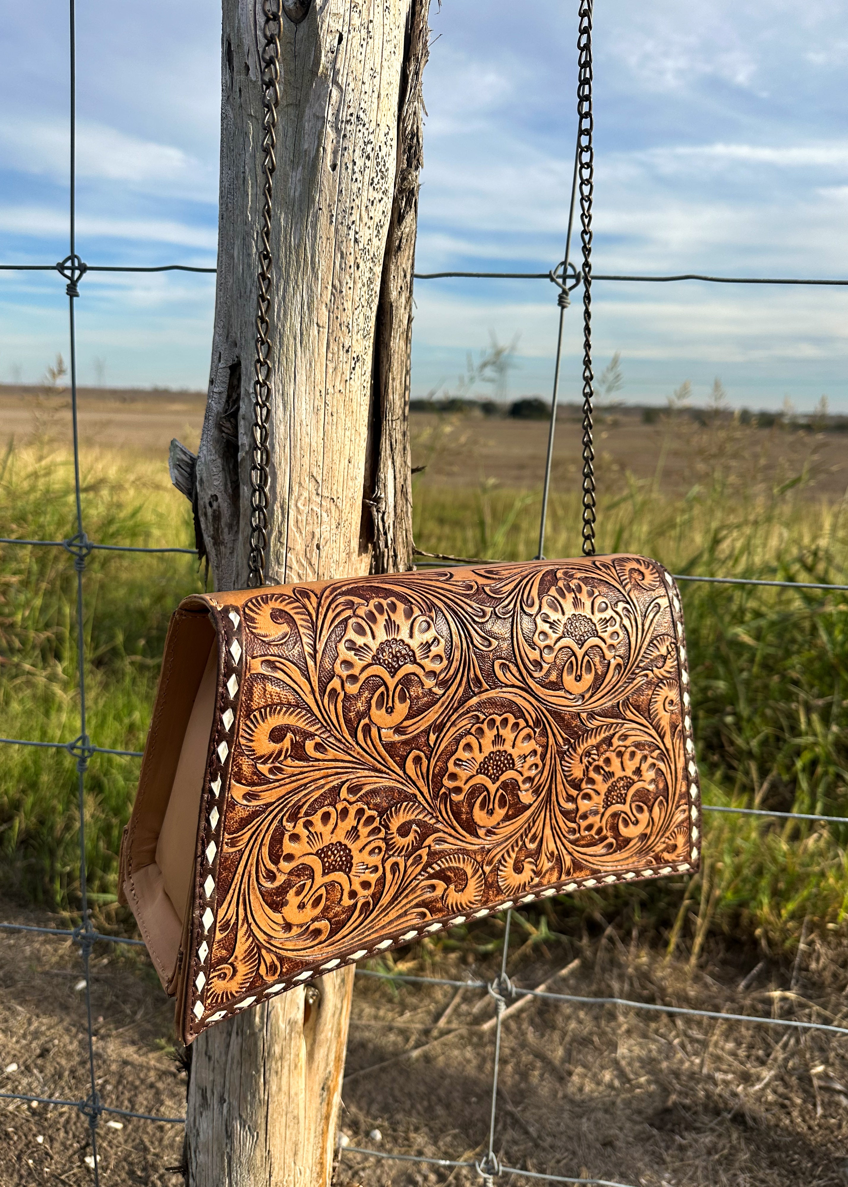 When you want Western art you can wear, The Sonoran Bloom Clutch steps in with hand-tooled florals that feel straight out of a desert sunset. It’s the perfect blend of cowgirl grit and refined charm — lightweight, bold, and ready for every rodeo night or wedding weekend you’ve got lined up.