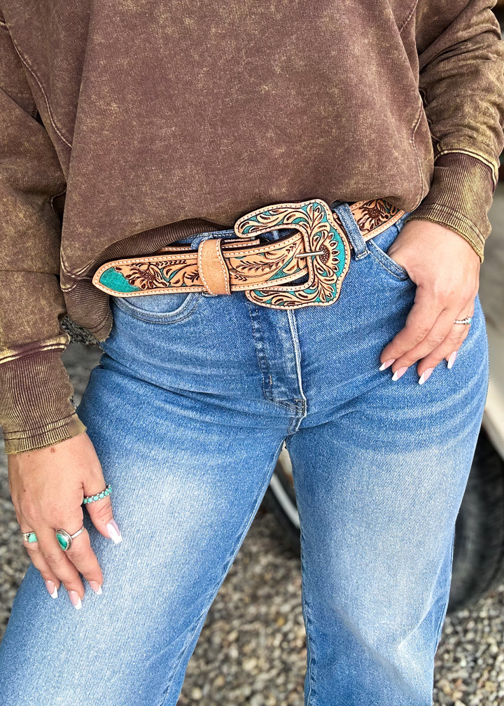 Classic Western craftsmanship with a fresh twist. The Rodeo Drive Scalloped Belt is built for cowgirls who know tradition but love a little edge. Hand-tooled leather meets a brand-new scalloped tooled buckle—a statement design that sets this belt apart from the rest. Whether you’re cinching your rodeo jeans or dressing up your favorite denim skirt, this piece brings rugged charm and timeless Western flair.