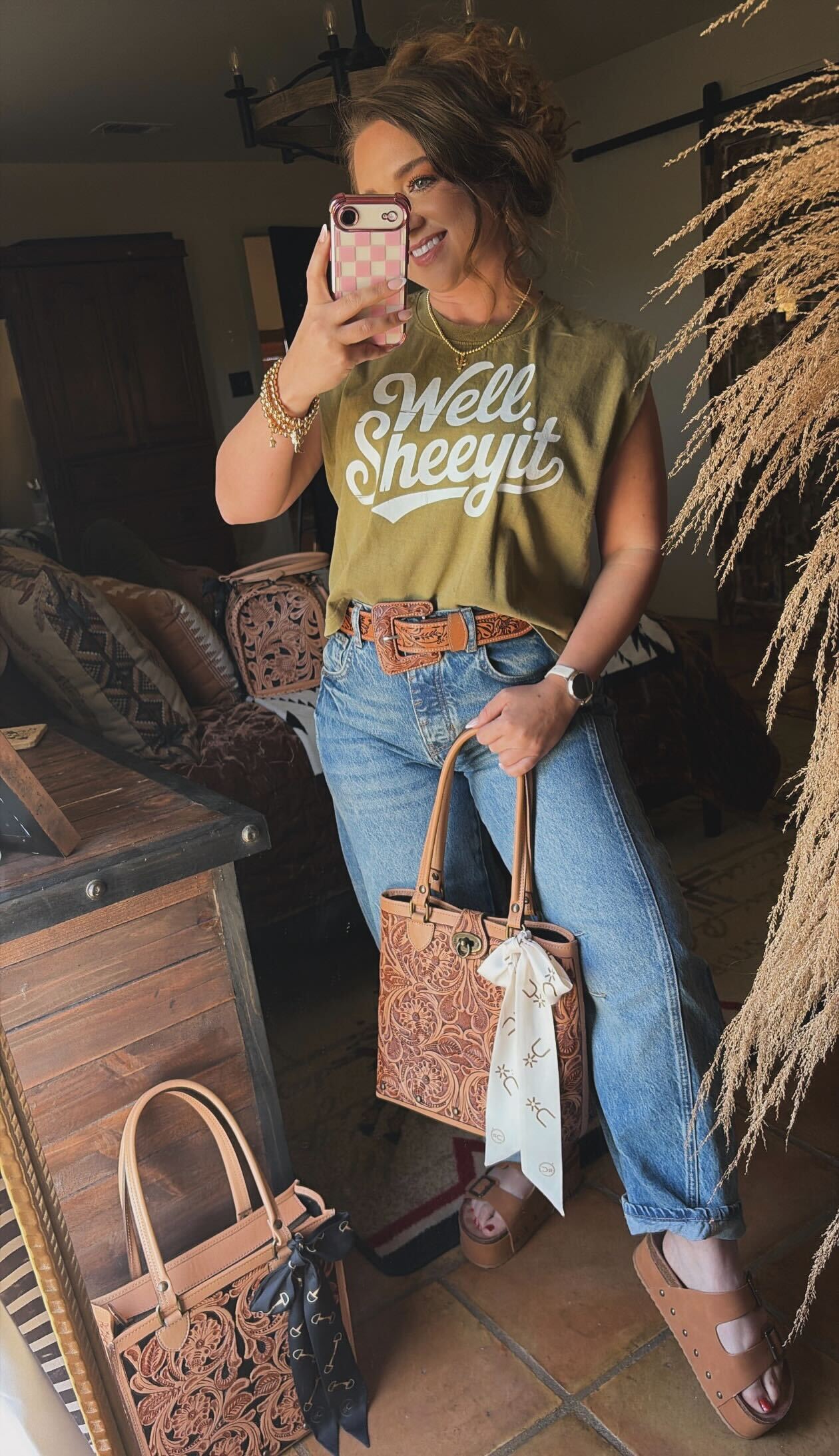 Sometimes the only response is… well sheeyit. This Boxy Tank brings a little humor and a whole lot of attitude to your everyday western style. Made for those moments when life throws something your way and all you can do is laugh it off. Easy, comfortable, and full of personality, it’s the perfect piece to throw on with denim and a great belt.