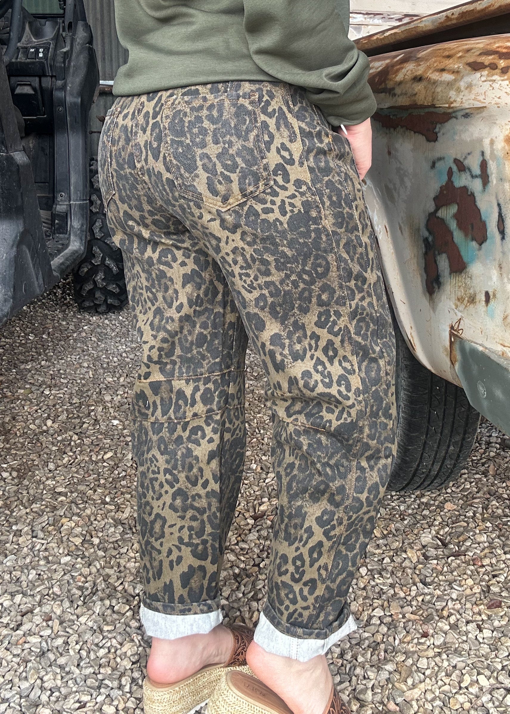 ✓ Leopard print denim with a lived-in wash