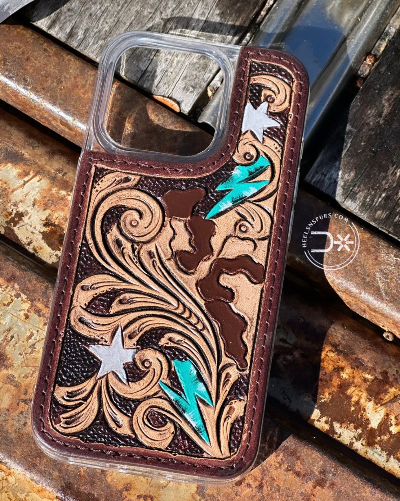 A lil’ sass, a lil’ flash, and a whole lotta Western attitude—this Tooled Lightning Bolt Phone Case is made for the bold. With a hand-tooled leather look and a striking lightning bolt design, it’s your new go-to for turning heads every time you answer a call or snap a pic. Because even your phone deserves a cowgirl upgrade. ⚡🤠